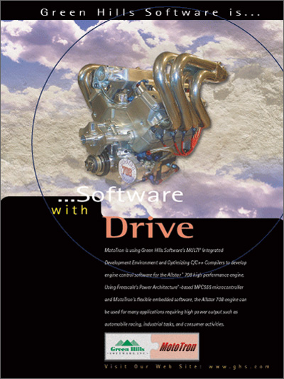 MotoTron is using Green Hills Software's MULTI® Integrated Development Environment (IDE) and Optimizing C/C++ Compilers to develop engine control software for the Allstar 708 high performance engine. Using Freescale's Power Architecture-based MPC555 microcontroller and MotoTron's flexible embedded software, the Allstar 708 engine can be used for many applications requiring high power output such as automobile racing, industrial tasks, and consumer activities.